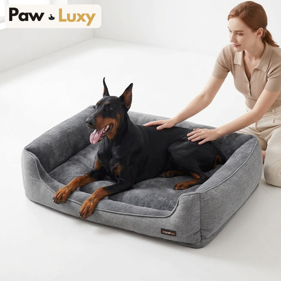 The bed your dog will choose over your sofa. Designed with thick raised bolster edges for head and neck support, wrapped in breathable linen-look fabric that blends into your home, and built with a plush sleeping surface that relieves anxiety and soothes restless dogs into deeper sleep.